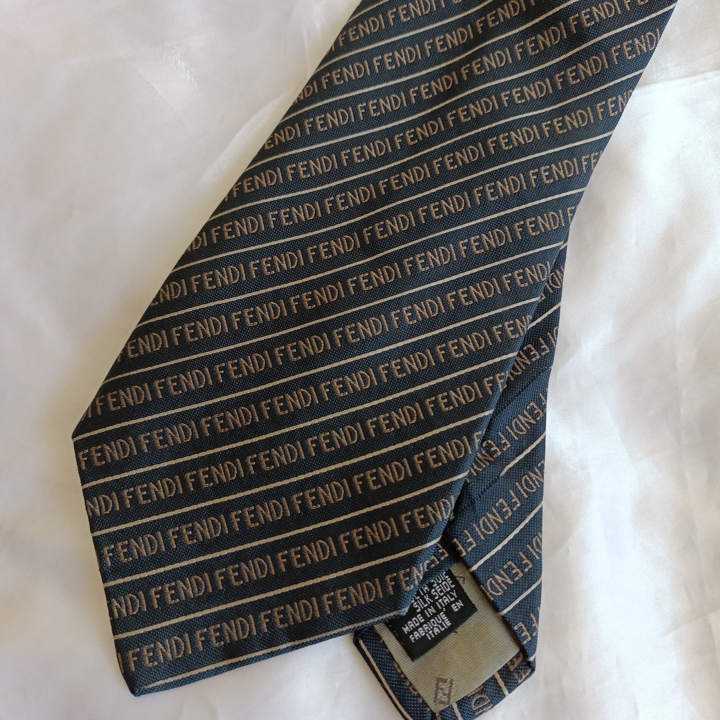 FENDI フェンディ ネイビー 紺 シルクネクタイ ロゴ入り